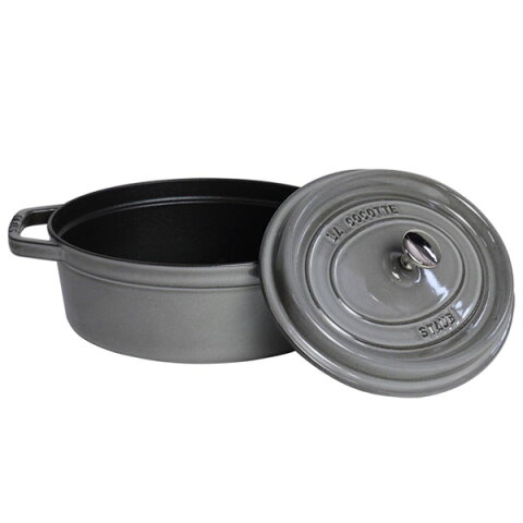 結婚のお祝いや新築祝いなどの贈り物ギフトにも大人気! アイテム ピコ ココット オーバル 23cm カラー graphite grey(グレー ) サイズ 直径:23cm / 幅(取手含):28cm 深さ:約9.5cm / 高さ(フタ含):14cm 容量/重量 2.35L/3.36kg 素材 ホーロー 商品について ストウブの加工はお鍋をひっくり返し、3本の棒で支えながら行います。